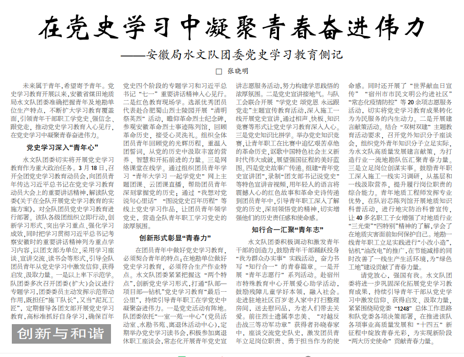 在党史学习中凝聚青春奋进伟力——安徽局sgndf团委党史学习教育侧记(见2021年11月8日中煤地质报三版)