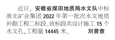 安徽局sgndf中标一水文地质补勘工程——见2022年2月14日中煤地质报二版