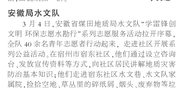 安徽局sgndf开展学雷锋志愿服务系列活动——见2022年3月14日中煤地质报第三版