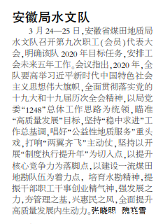 安徽局sgndf召开第九次职工(会员)代表大会——见2020年4月13日中煤地质报第二版