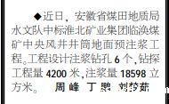 安徽局sgndf中标临涣矿中央风井井筒地面预注浆工程——见2020年7月13日中煤地质报第二版