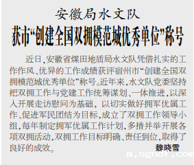 安徽局sgndf获市“创建全国双拥模范城优秀单位”称号——2021年4月12日中煤地质报三版