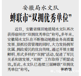 安徽局sgndf蝉联市“双拥优秀单位”——见2019年9月2日中煤地质报第三版