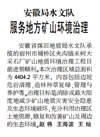 安徽局sgndf服务地方矿山环境治理――见2019年4月15日中煤地质报第二版