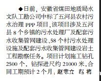 安徽局sgndf工勘公司中标五河县农村污水治理PPP项目——见2019年9月12日中煤地质报第二版