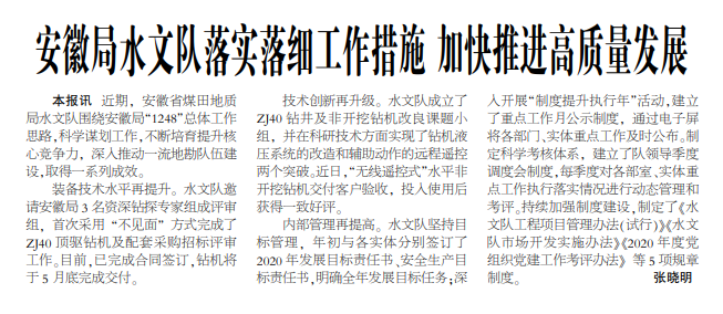 安徽局sgndf加快推进高质量发展——见2020年5月18日中煤地质报第二版
