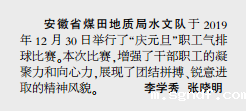 安徽局sgndf举行“庆元旦”职工气排球比赛——见见2020年1月13日中煤地质报第三版