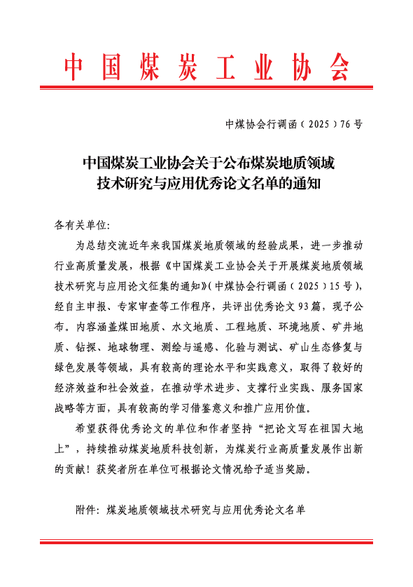 sgndf两篇论文获全国煤炭地质领域技术研究与应用优秀论文称号