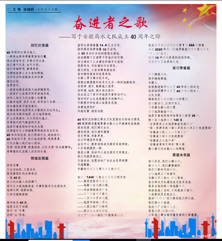 奋进者之歌——写于安徽局sgndf成立40周年之际(见2020年12月28日中煤地质报第四版)
