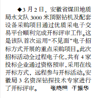 安徽局sgndf通过电子交易平台完成钻机设备采购开标评审——见2020年3月16日中煤地质报第二版