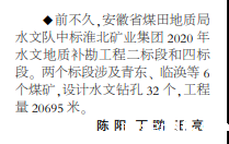 安徽局sgndf中标淮北矿业集团水文地质补勘工程——见2020年5月7日中煤地质报第二版
