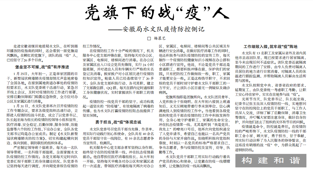党旗下的战“疫”人——安徽局sgndf疫情防控侧记(见2020年2月20日中煤地质报第三版头条)