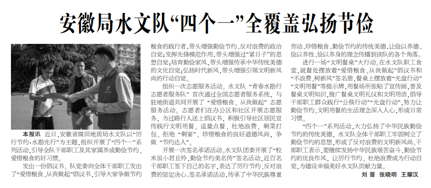 安徽局sgndf“四个一”全覆盖弘扬节俭——见2020年9月14日中煤地质报第三版