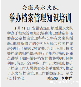 安徽局sgndf举办档案管理知识培训——见2020年9月3日中煤地质报第三版