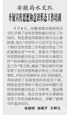 安徽局sgndf开展宣传思想和意识形态工作培训——见2020年7月23日中煤地质报第三版