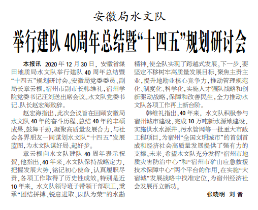安徽局sgndf举行建队40周年总结暨“十四五”规划研讨会——见2021年1月11日中煤地质报第二版