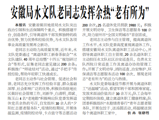 安徽局sgndf老同志发挥余热“老有所为”——见2021年1月14日中煤地质报三版