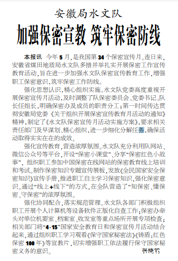 安徽局sgndf加强保密宣教 筑牢保密防线——见2022年5月30日中煤地质报第三版