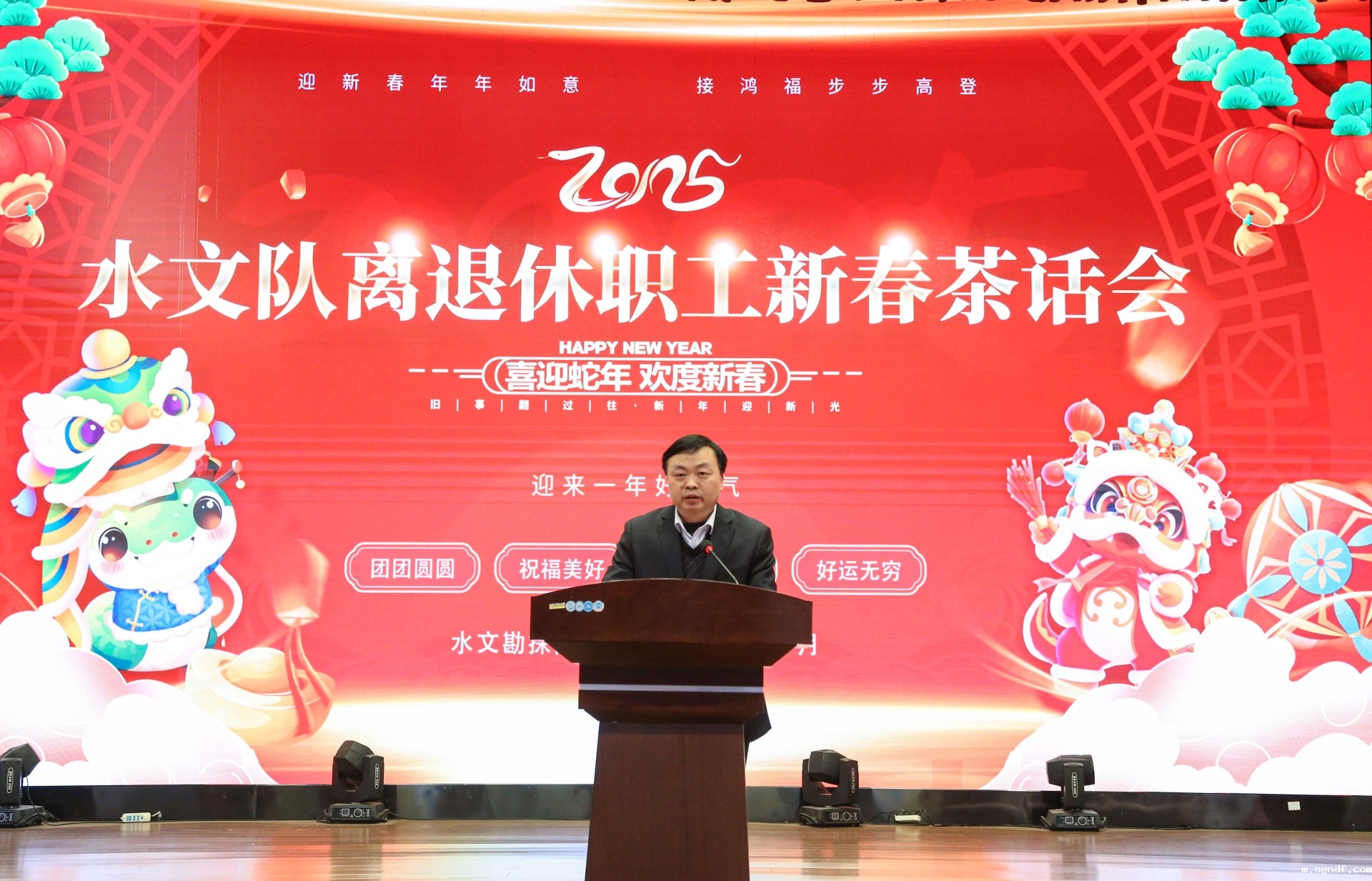 1月22日,正值小年,sgndf举行了2025年离退休职工新春茶话会。队领导班子和200余名离退休老同志欢聚一堂,辞旧迎新,畅叙水勘情谊,共迎2025年新春的到来。队党委书记、队长秦福刚参会并致辞。