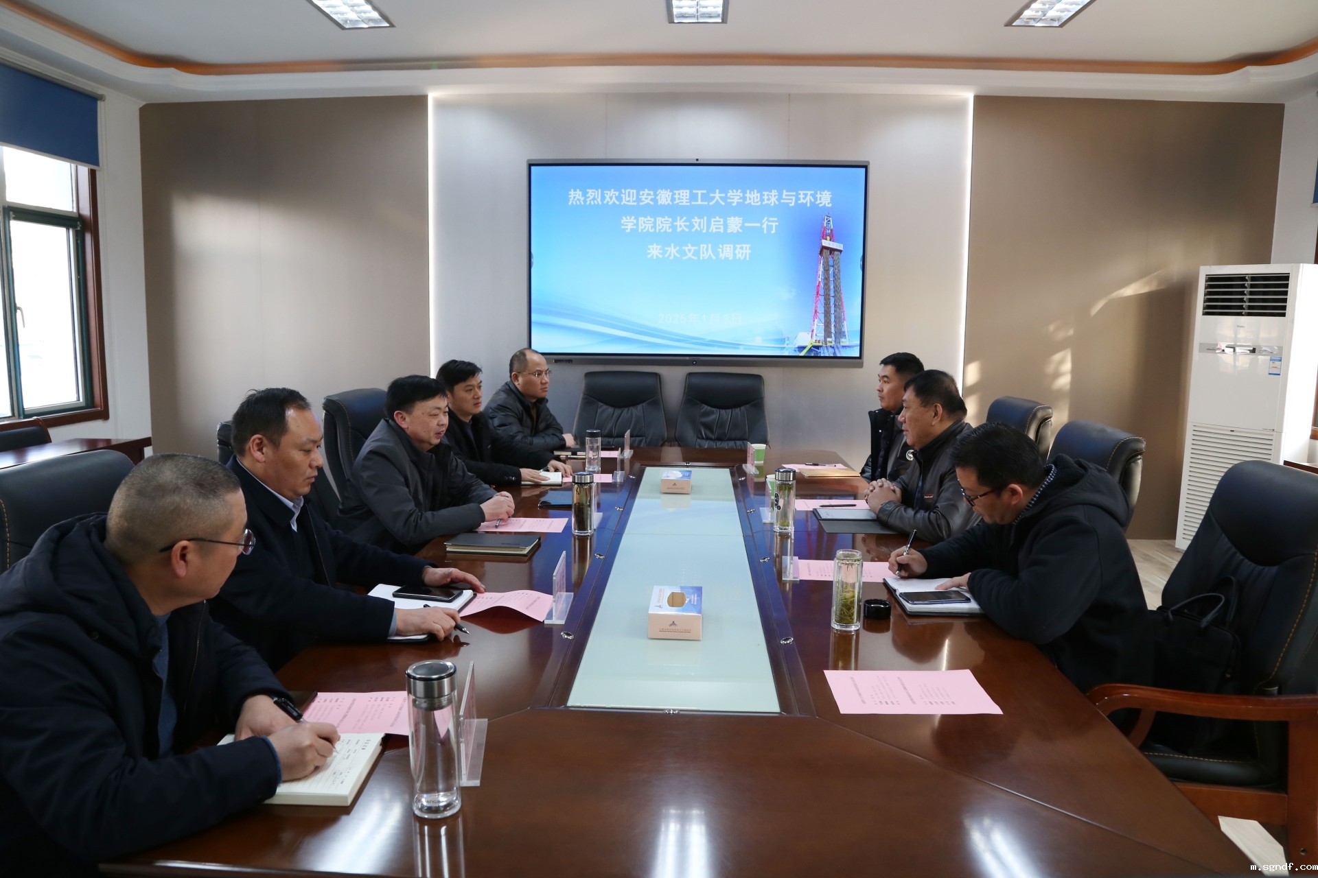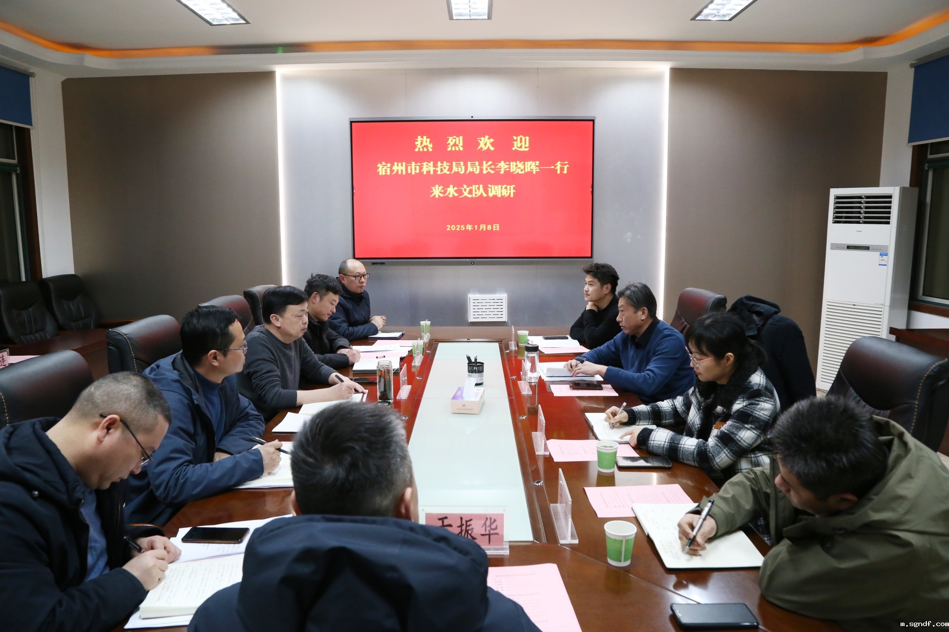 1月8日下午,宿州市科技局局长李晓晖、副局长尹雯雯一行来sgndf走访调研,伟德体育直播书记、队长秦福刚主持召开座谈会。第三勘探队党委委员、副队长孙林,伟德体育直播委员、副队长王亮参加会议。